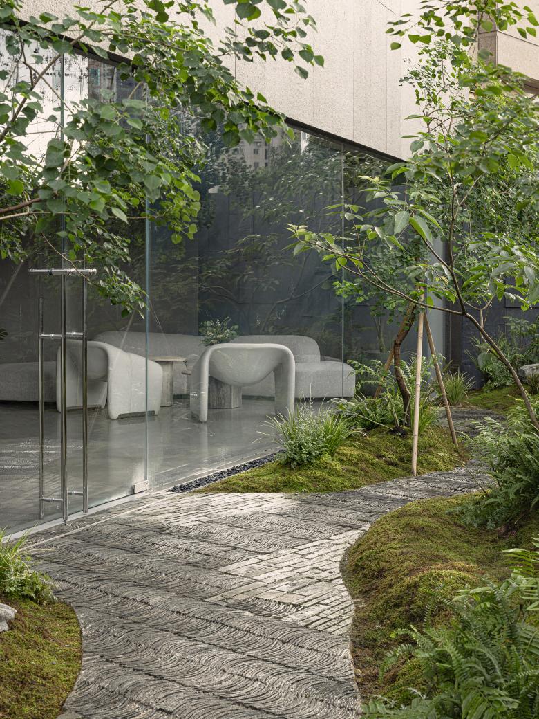 Nestled within the urban center, the courtyard acts as a tranquil retreat, shielding visitors from the hustle and bustle outside and introducing them to an "urban living room" that opens up to nature and light.