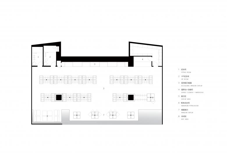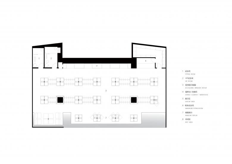 Arranged in an orderly manner, the columns endow the space with a distinctive character, which attracts customers to step in and wander between the columns (i.e. displayed brand clothes).