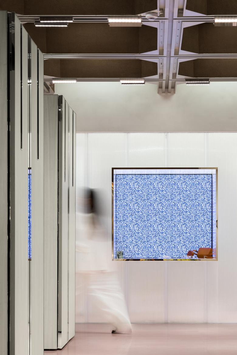 Columns can be moved to two sides and combined as a matrix. In this way, the usable area of the space is maximized to serve a wide spectrum of events, such as pop-ups and small-scale press conferences of brands.