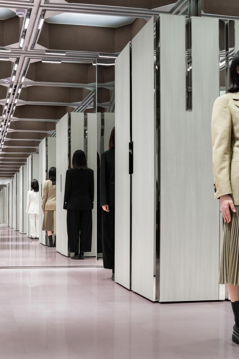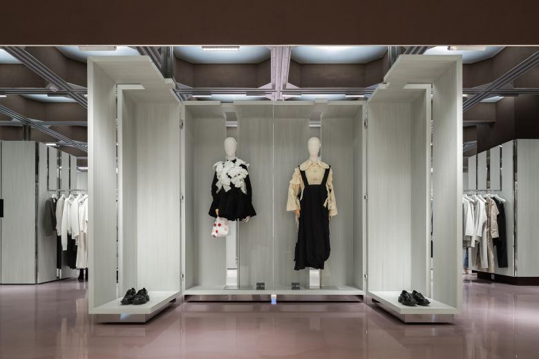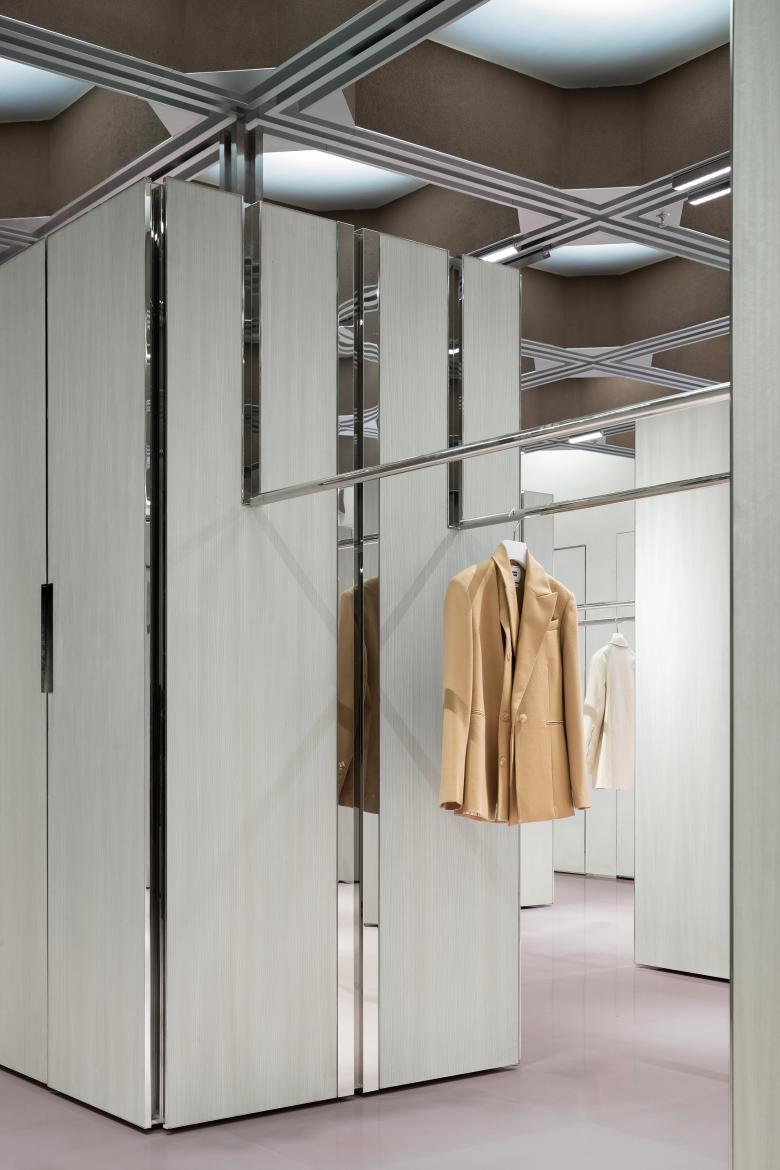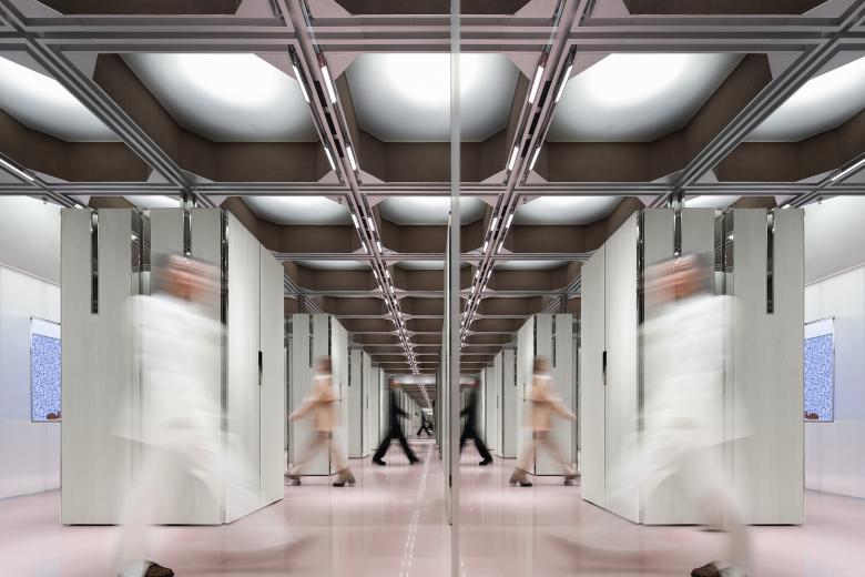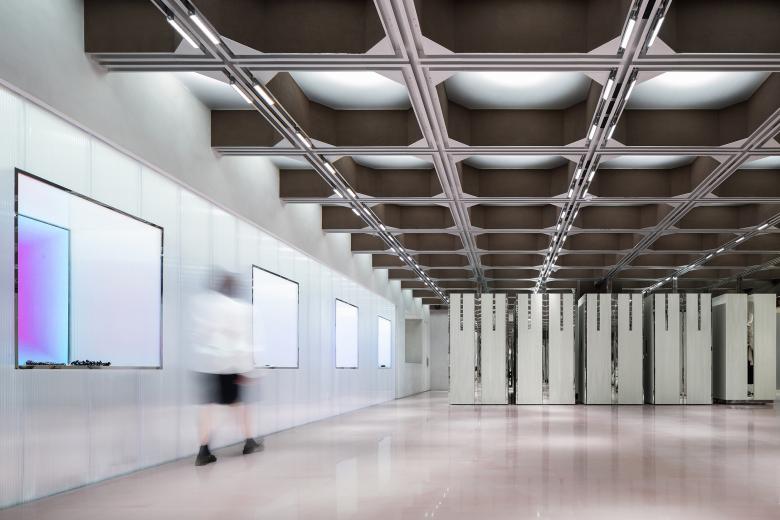 Mirrors at the end of space make customers feel like they're standing in between lofty buildings, and attract them to immerse and indulge in the orderly yet infinite space.