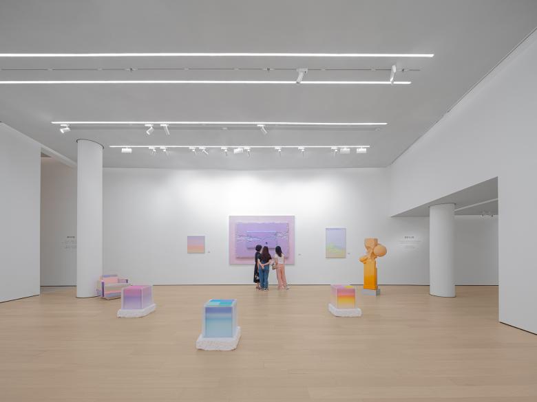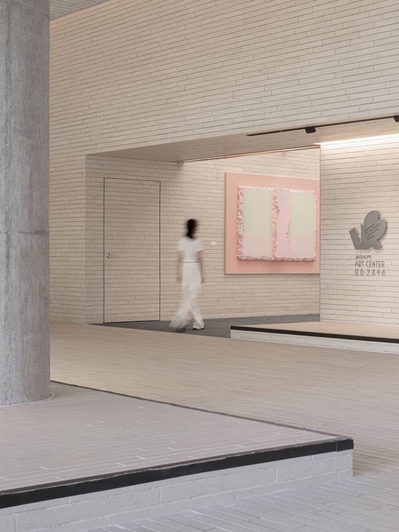 Inside the Art Center is a spacious and open display area, where spaces of different levels and scales add a sense of depth and dimension, enhancing the overall artistic experience. The art exhibition is complemented by original sofa collections designed by Various Associates, which becomes an extension of the art displays.