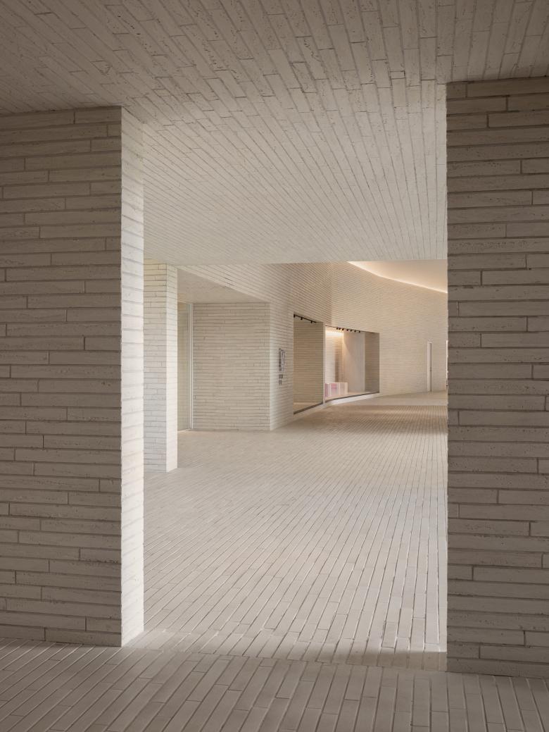 The open viewing areas are strategically placed in the gaps between the shops, providing a delightful view of the outdoor natural landscape. The openness and simplicity of the space create a serene, cozy, and relaxing atmosphere. The clever arrangement of structural blocks resulted in a meandering passageway, which helps to eliminate the monotony and exhaustion that can arise from traversing a long passageway.