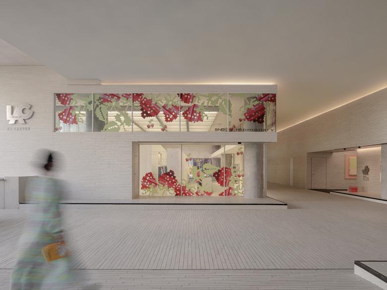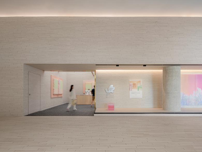 The existing 6-meter-high floor height of the public area posed a challenge in controlling the guests' sightlines at an appropriate level. Taking advantage of the floor height, the design team incorporated glass curtain walls into the upper and lower levels of store facades combined with new shopfront designs. The introduction of natural daylight enhances transparency and brightness in the indoor area, while the large show windows act as a platform to display artworks or products, creating a pleasant shopping experience for customers.