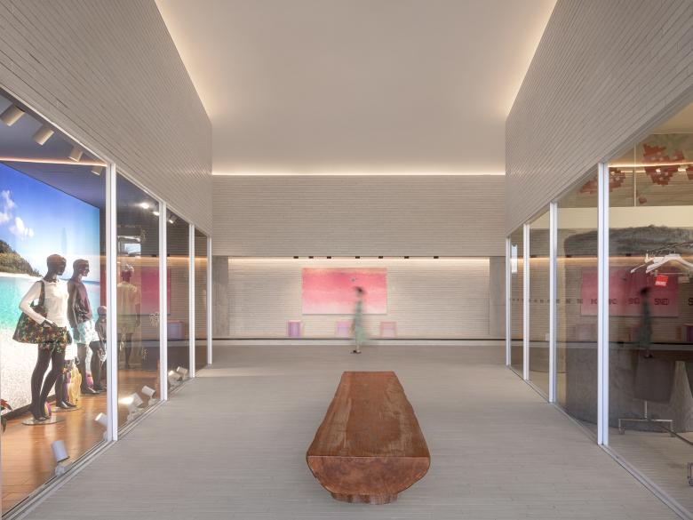 Fashion boutique store SND is one of the brands that has settled in this new commercial space. This SND concept store in Sanya, also designed by Various Associates, features a collection of fashion products from hundreds of brands. Taking "waves" as the design concept, the design team crafted clean and minimalist spatial blocks that feature rhythmically varying heights, inviting customers to explore throughout the store as if they were surfing through the waves.