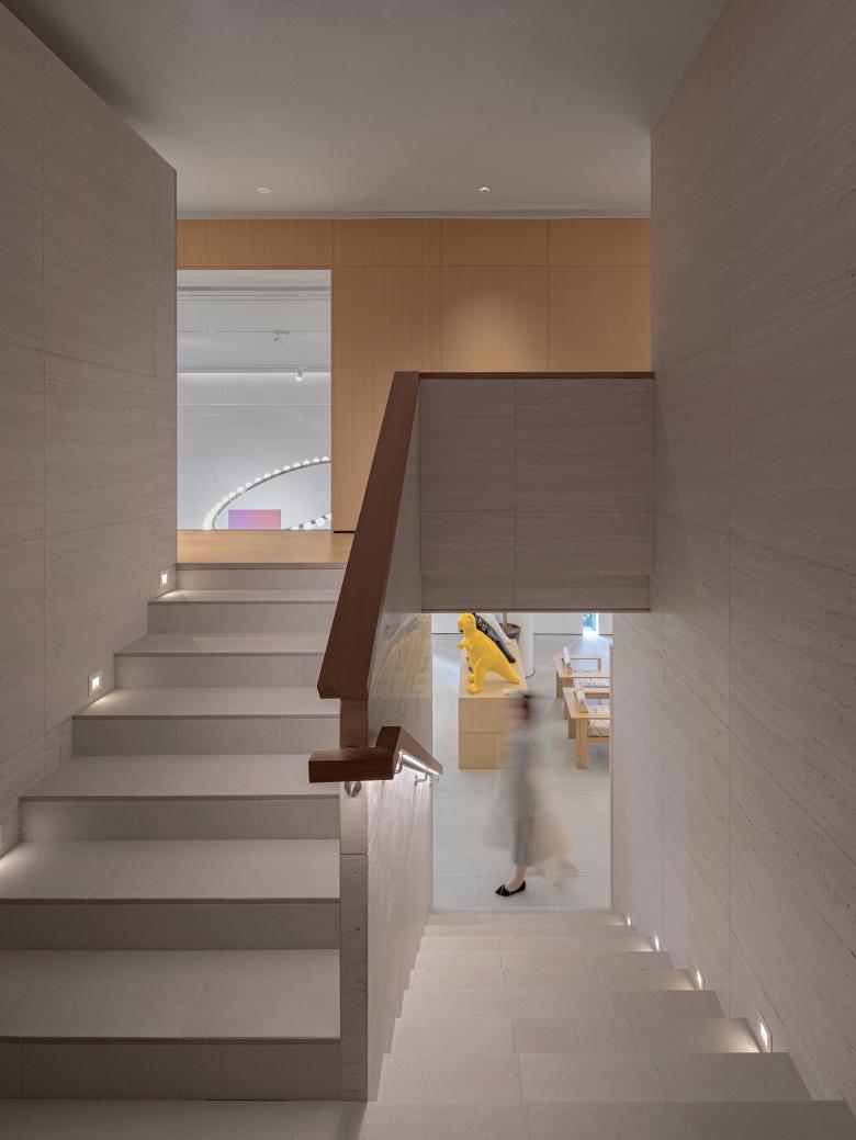 The art shop and reading room on the second floor are designed with a unified design language in which the changing brightness of lighting plays a crucial role in evoking visitors' emotions and enhancing their viewing experience in various dimensions.