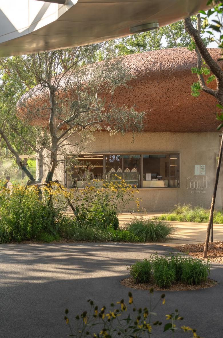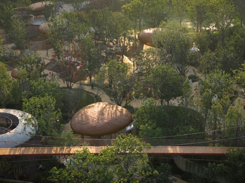 The farm’s circular layout connects animal enclosures, a creative workshop, retail and dining that balances immersive experience with operational efficiency. New structures are embedded into the landscape, creating a continuous visual rhythm across the site. Boulder-like architectural volumes gently emerge from misting systems and native vegetation. Semi-submerged animal enclosures with green roofs reduce the buildings’ visual mass, blending the open farm gently into nature.