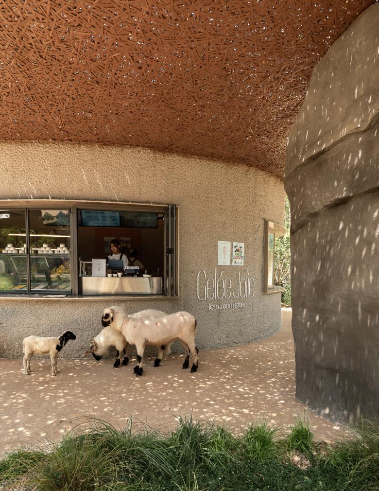 The animal zone blends habitat, interaction, and ecological education, with enclosures, resting pavilions, and coffee and donut shops forming a functional cluster. The low-intervention design tucks enclosures beneath the slopes, minimizing their visual presence. The gentle incline allows animals to roam the grass, while the earth-covered shelters provide safety and comfort.