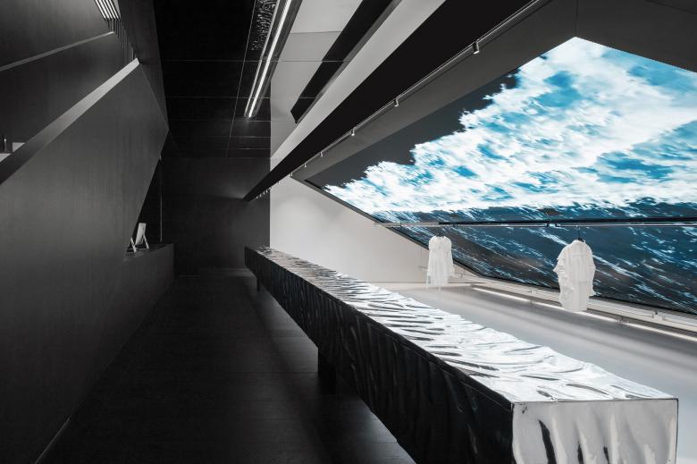 (SO)What upholds the unrestrained and independent character of contemporary females, which indicates the brand's core values. In response, Various Associates created a cool, fashionable, and tasteful spatial atmosphere through the strong contrast of white and black hues and the giant variable screens, to interpret the brand's original intention.