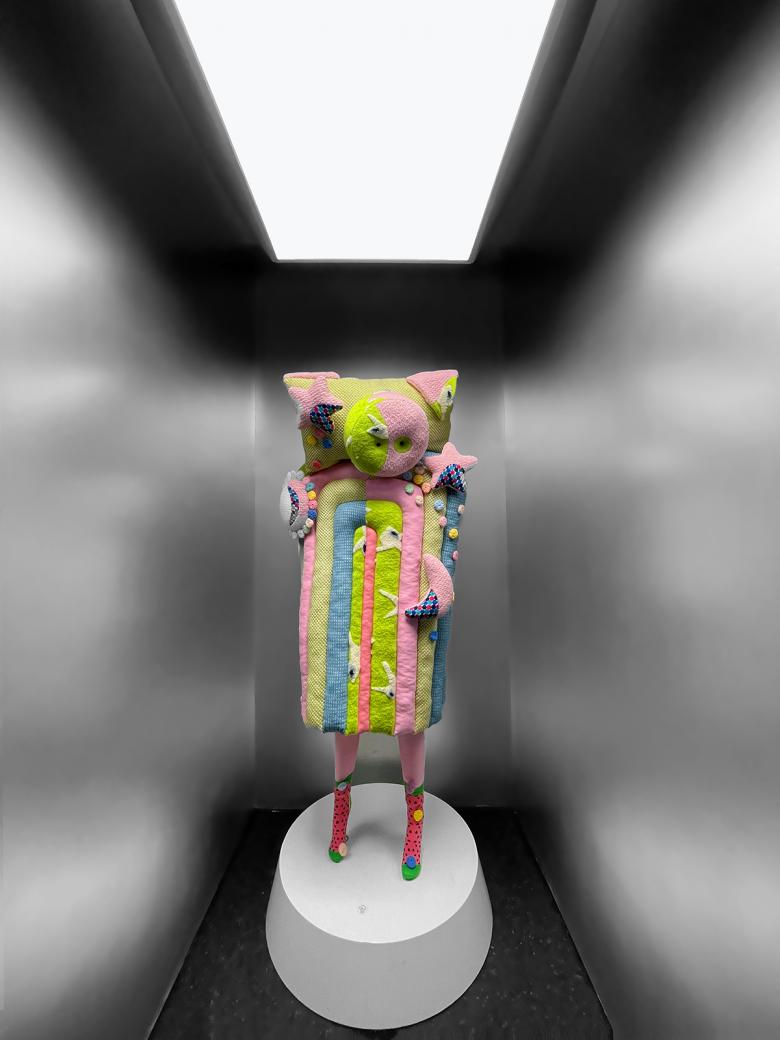 Colored objects in the space are especially clear and bright. Conspicuous and dramatic visual effects are created as people wearing clothes with different colors walk in the space.