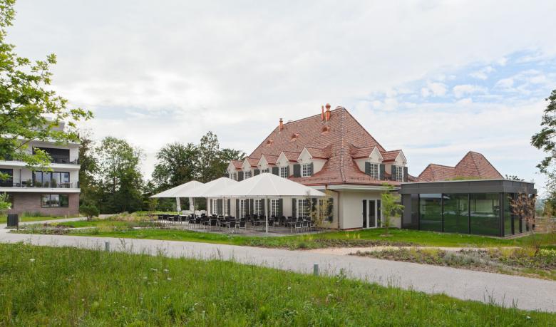 Die Neubauten integrieren sich harmonisch in die Parkanlage und säumen die historische Villa Winzerpark, die durch WIRTH+WIRTH ARCHITECTS totalsaniert und ihrer neuen Bestimmung als Gastronomiebetrieb zugeführt wurde.