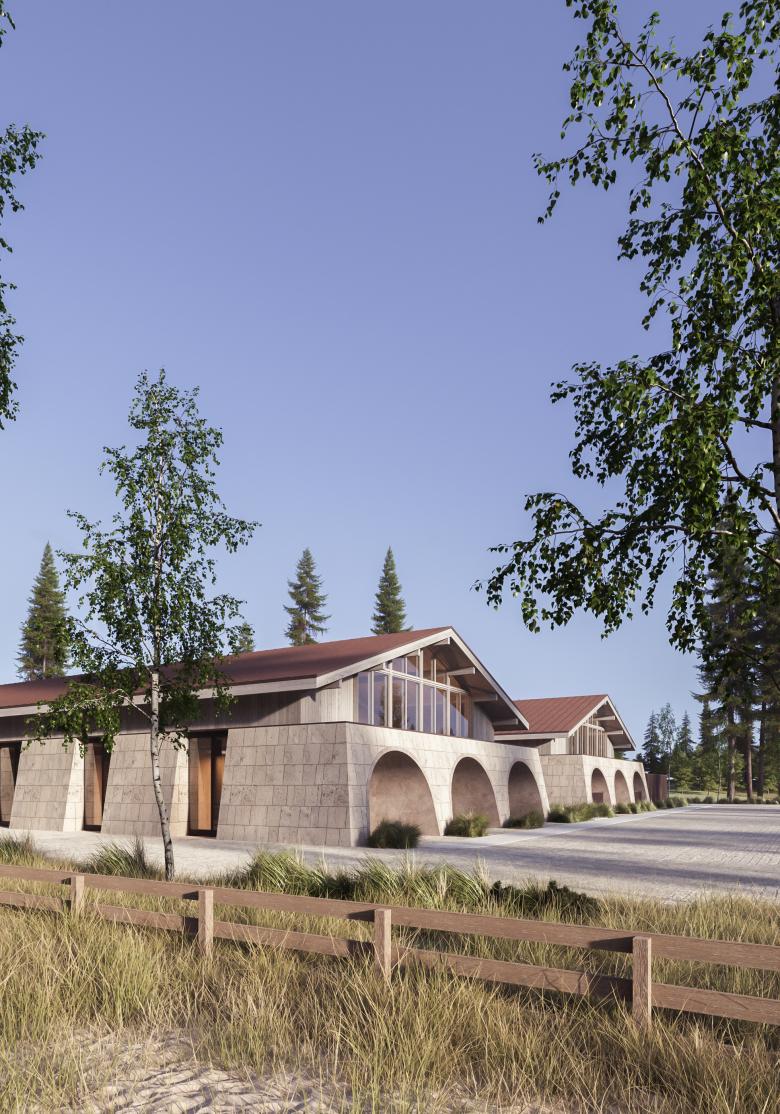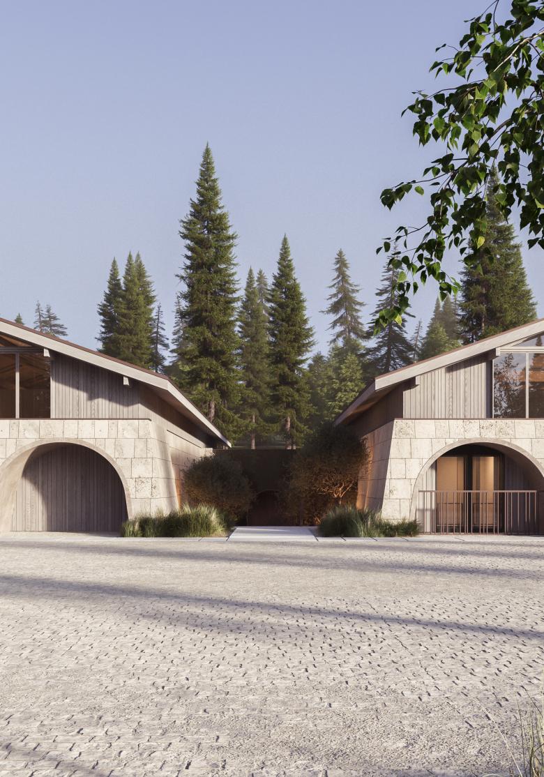 Dog Tales Rescue & Sanctuary is a dual-species animal shelter located in Canada, designed to redefine how care environments can feel. The architecture balances functionality with emotional warmth, using natural materials such as corten steel, stone, and wood to evoke a sense of safety and dignity. A central sunken lobby connects them and introduces natural light into the lower level, which hosts public and educational functions. Each animal area is tailored to species-specific needs: dogs have direct access to outdoor yards; horses are provided with operable windows.