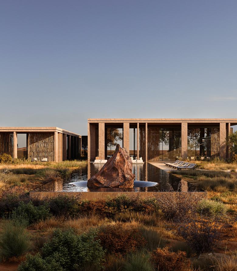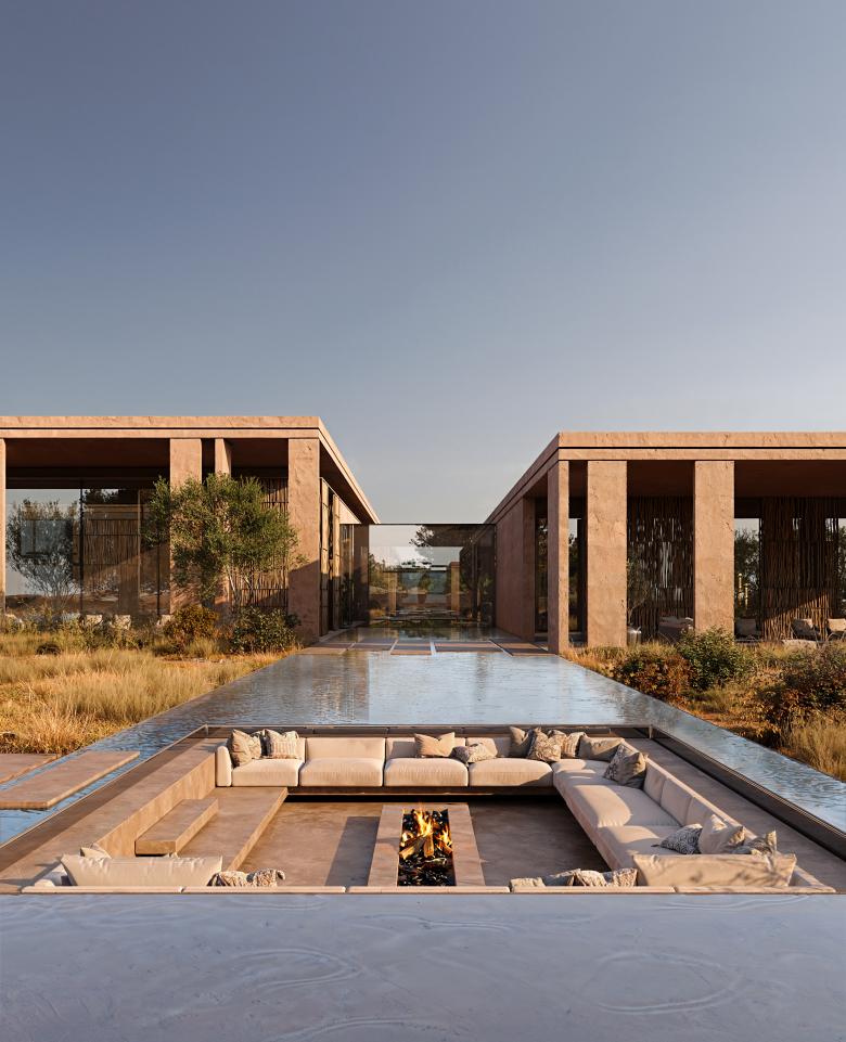 Serava Villa is a private residence located in one of the most secluded and exclusive areas of Abu Dhabi. The design draws inspiration from the surrounding desert landscape and nearby sea, interpreting their fluidity, textures, and tones through sculptural forms and a muted material palette. Natural stone, textured plaster, and warm wood tones reflect local identity while conveying timeless elegance.