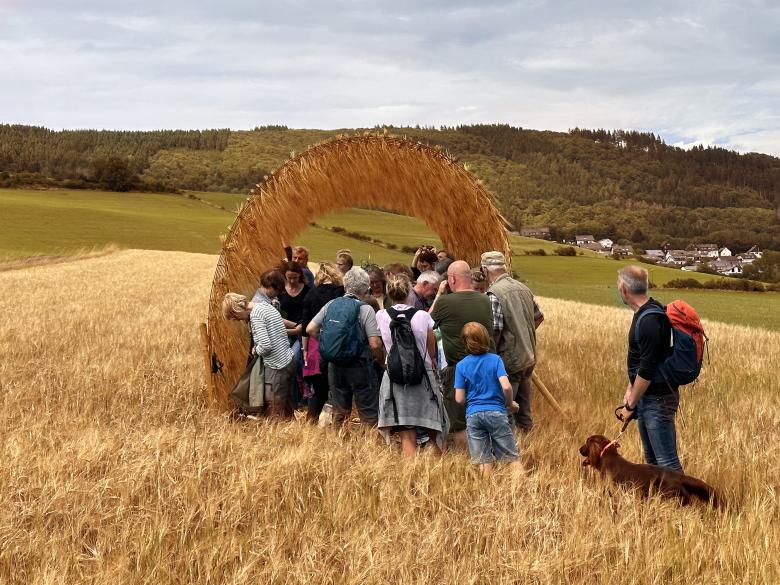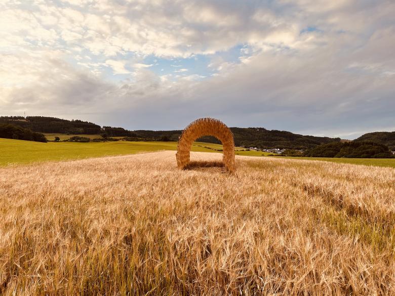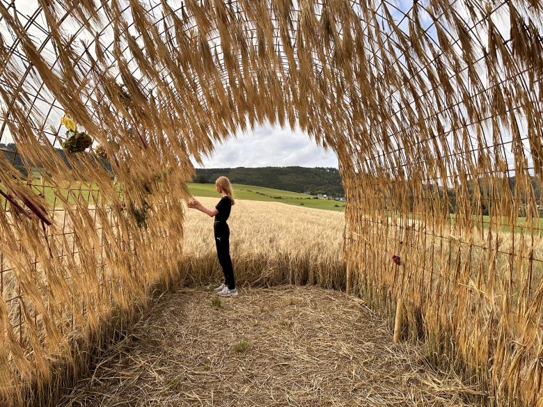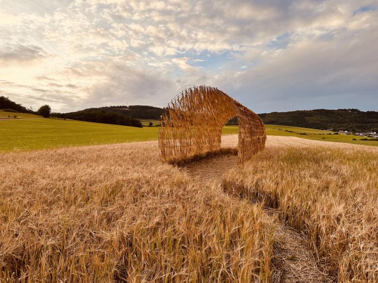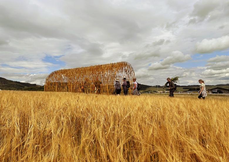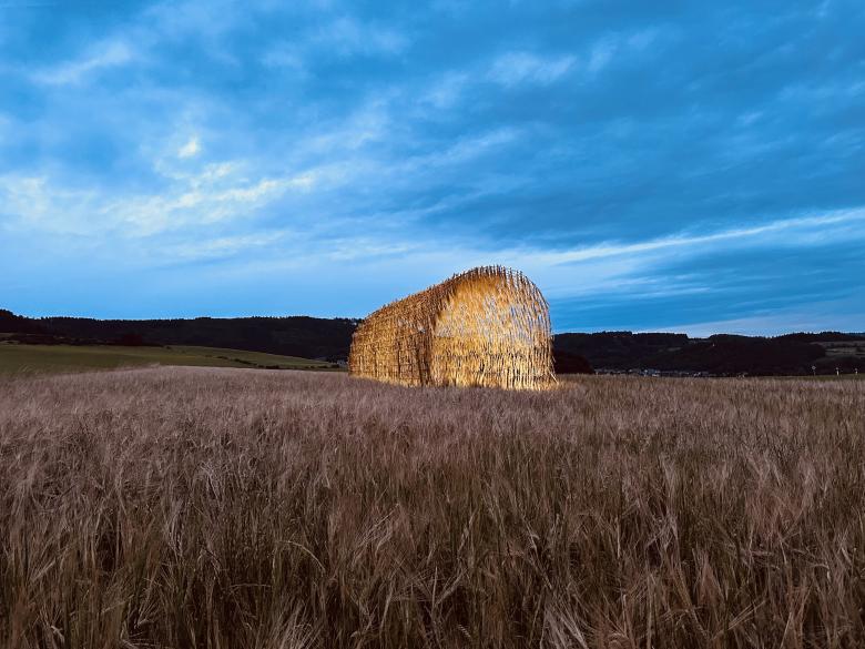 Das Cornfield Pavilion ist Teil der Open Mind Places-Initiative in Referinghausen, gelegen in der Sauerlandregion Deutschlands. Diese kollaborativ errichtete Installation zeichnet sich durch eine Verstärkungsnetzstruktur aus, die als Stütze für Getreideähren dient und die Beziehung zwischen Natur und Gemeinschaft symbolisiert.