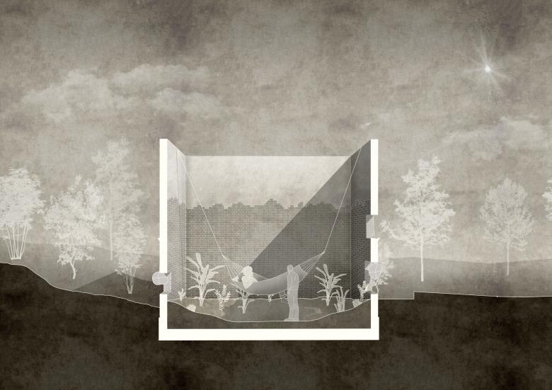 Der Raum der Stille, ein Umbau eines ehemaligen Ziegenstalls, wurde zusammen mit der lokalen Bevölkerung zu einem Treffpunkt umgestaltet, der auf metaphorische Weise die derzeitige Ökostromerzeugung der Stadt Korbach darstellt.