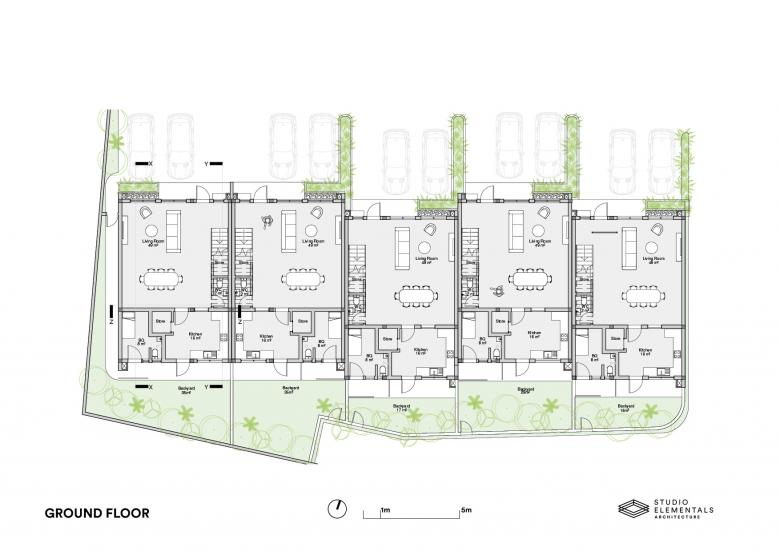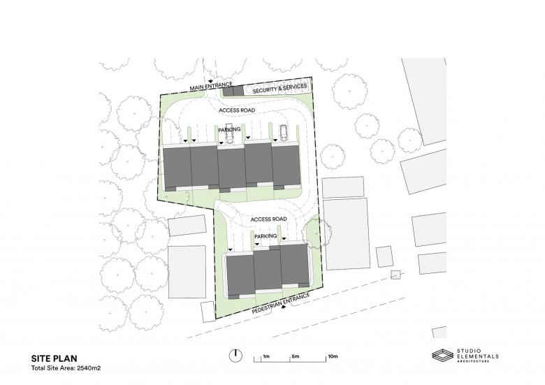 The design of the site and arrangement of buildings have been carefully planned taking into account space efficiency, maximum views, and minimum sealed surfaces to include a private garden space for each terrace house and an increased general landscaping area. Continuous green spaces around the property with planned trees account for shaded and cooler outdoor spaces where residents can play.