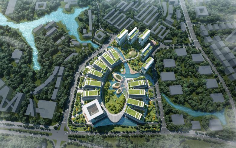 Situated in an ecological belt of the Songshan Lake district, the new campus sprawls over a wider site area of 137,273 sqm. Phase 1 of which will provide large shared facilities, residential areas and flexible laboratory spaces to create a world class research destination.