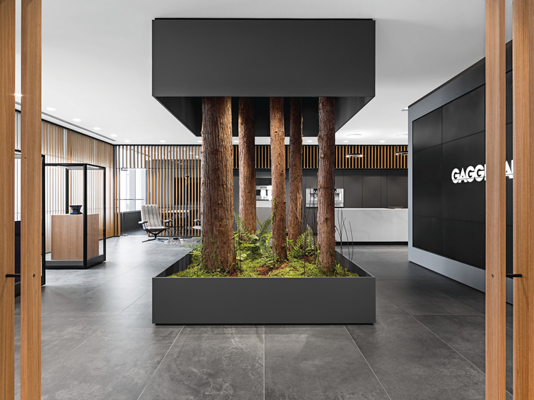 Drawing inspiration from the same building typology historically found in ancient Chinese homes, einszu33 included a contemporary take on a Siheyuan as part of the showroom layout: a courtyard surrounded by buildings on all four sides, known to symbolize wealth and prosperity. To further complement this tradition, Black Forest trees were included as part of the elegant courtyard construct, to pay homage to the brand’s German heritage dating back to 1683.