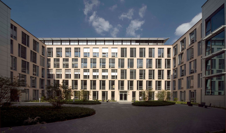 Funktion – Der 5-geschossige Baukörper wird als Büro- und Verwaltungsgebäude genutzt. Es sind klein- und großteilige Mieteinheiten möglich. Zusätzlich entsteht eine Kantine im Basement mit zusätzlichem Sitzplätzen im abgesenkten Hof an der Westseite sowie eine Tiefgarage mit 271 Stellplätzen.