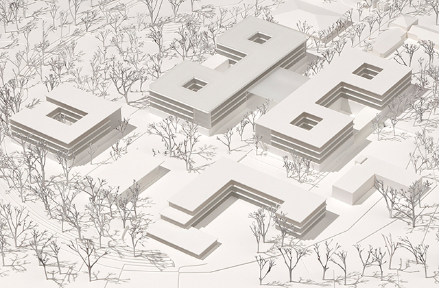 Die Modellfotos zeigen die Neubauten des Diagnose Therapie- und Forschungszentrums (DTFZ) des LVR-Klinikums Düsseldorf. Die 367 Betten umfassenden Neubauten beinhalten zukünftig Behandlungsangebote der Allgemeinpsychiatrie, der Gerontopsychiatrie, der Neurologie und für Abhängigkeitserkrankungen. Neben den Pflegestationen werden Untersuchungs- und Behandlungsbereiche, Labore und ein Hörsaal geplant. Der Neubau eines Parkdecks mit rund 180 Pkw-Stellplätzen ist ebenfalls Bestandteil der Gesamtmaßnahme. Das geschätzte Investitionsvolumen beträgt rund 76 Mio €.