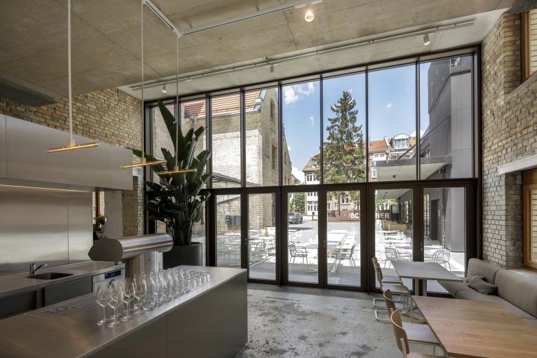 Durch die Revitalisierung der 120 Jahre alten Gebäude bot sich die Chance, auch das Blockinnere wieder zu beleben und mit einer neuen Gastronomie zum Treffpunkt im Quartier zu machen. Dabei wurden der alte Industriecharakter erhalten, die unterschiedlichen Zeitschichten sorgsam freigelegt und die Nutzung als coworking-space an die Gegebenheiten der Gebäude angepasst statt umgekehrt. Entstanden ist ein lebendiger Ort, der viel erzählt von hundert Jahren Stadt- und Wirtschaftsgeschichte und der zugleich ganz neue Arbeits- und Kreativitätskonzepte zulässt.