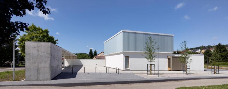Am Ortseingang von Maulbronn gelegen, muss der Neubau des Kirchenzentrums mehrere, teils gegensätzlich erscheinende Aufgaben erfüllen: städtebaulich soll er Merkzeichen sein, muss beruhigen in heterogener Umgebung, soll einladend wirken und sich doch abschotten gegen den Kreisel mit seinem Verkehrslärm.