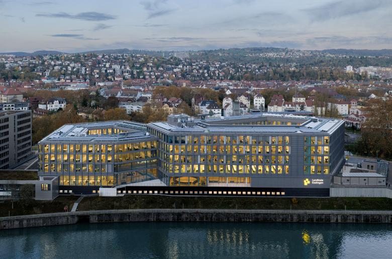Das Landratsamt Esslingen fügt sich präzise in ein außergewöhnlich vielfältiges Umfeld ein: Merkelpark, Neckarufer und Hammerkanal prägen den Ort und bilden die landschaftliche Kulisse in die sich der Neubau einbettet. Mit seiner gestaffelten Figur begleitet der Neubau das Neckarufer und reagiert auf die Topografie des Ortes. Die Erdgeschosszone öffnet sich auf der Süd-West-Seite großzügig zum Wasser, wodurch zentrale Funktionen des Landratsamtes bereits von der Neckarseite und der daneben verlaufenden Bundesstraße aus sichtbar werden.