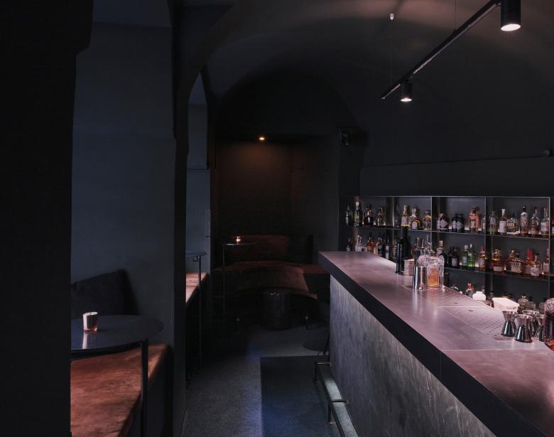 Verwinkelt und geschichtsträchtig präsentiert sich Wiens historische Innere Stadt. Für die Neueröffnung der Cocktailbar Truth&Dare im Parterre eines ehem. Benefiziatenhauses aus dem späten 17. Jahrhundert wurde ein Konzept realisiert, das die schnörkellose Haltung der Inhaber widerspiegelt: Pure & raw sollte es sein – qualitatives Handwerk und Barkultur zelebrieren. Ein komplementäres Farbkonzept teilt den Gastraum in zwei Bereiche. Das Ambiente im Barbereich wird durch eine allgemein dunkle und kühle Farbpalette definiert, der monumentale Tresen, zentrales Element aus Stein und Schwarzstahl, dominiert den Raum. Im Hintergrund nimmt ein schlichtes Regalsystem aus Schwarzstahl den geknickten Wandverlauf des alten Gemäuers auf und präsentiert stolz das gustatorische Angebot. Die hingegen weichen Formen der samtigen Lounge zeigen sich in warmen, satten Beerentönen und bilden einen haptischen, farblichen und atmosphärischen Gegensatz zum Nebenraum. Eingebettet in die historischen Fensterlaibungen, eröffnen private Sitzecken den Blick auf die sagenumwobene Schönlaterngasse und laden zu ungestörtem Bargeflüster.