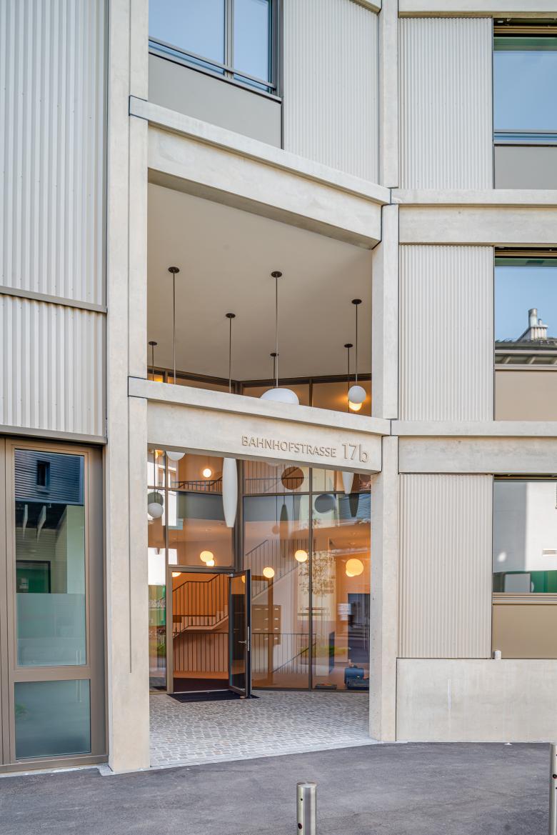 - Ca. 400 m² für Dienstleistungsbetrieb, angesiedelt im Erdgeschoss nördlich zur Bahnhofstrasse