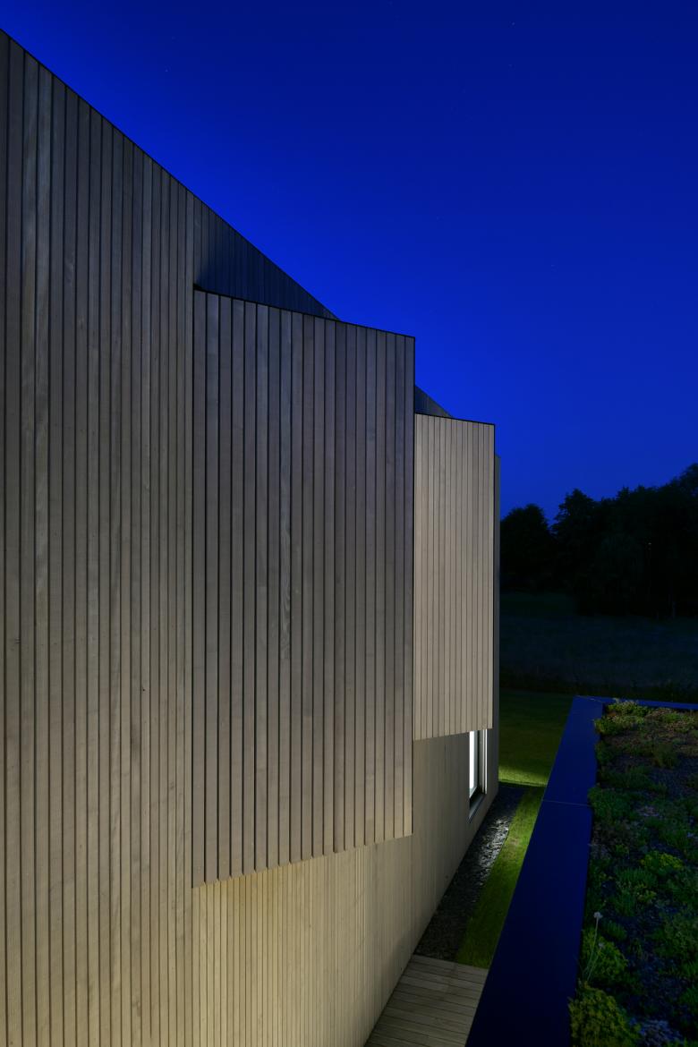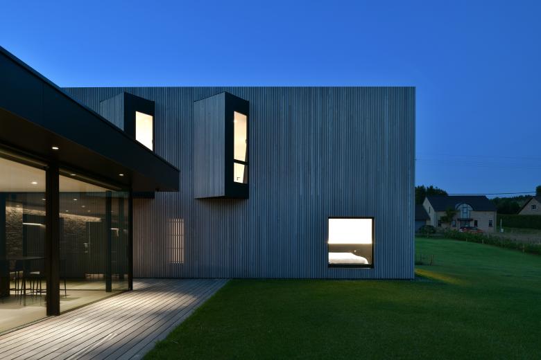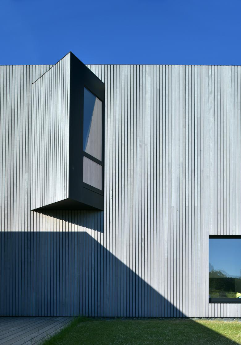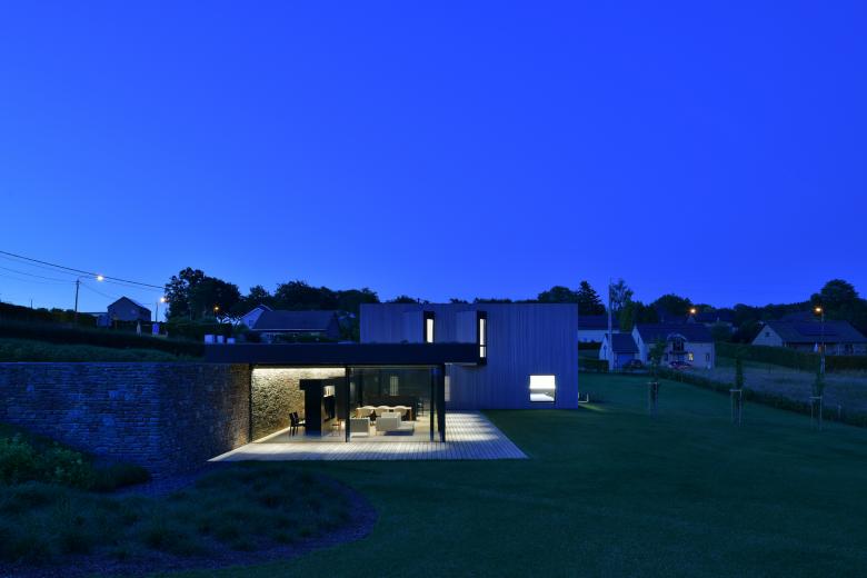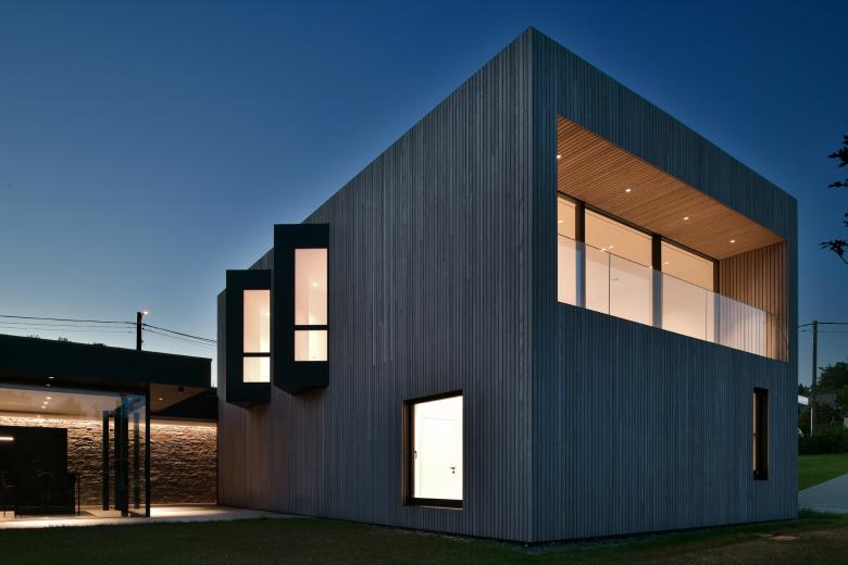 Les façades sobres expriment clairement un espace séjour ouvert ainsi qu’un volume nuit/services plus fermé.