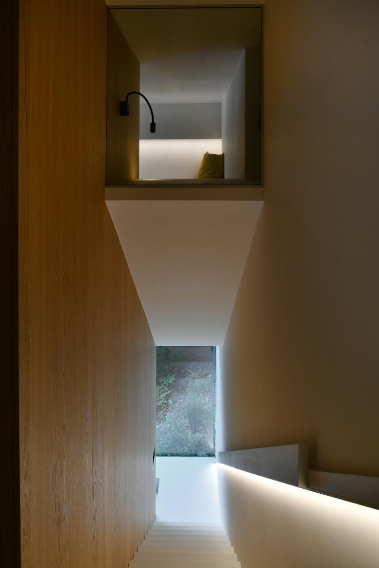 Ce volume indépendant de petite taille et bioclimatique est implanté dans la zone de forêt jointive à l’habitation existante. Il a la particularité de pouvoir être accessible à partir de la maison existante ou de manière indépendante via un accès extérieur direct.