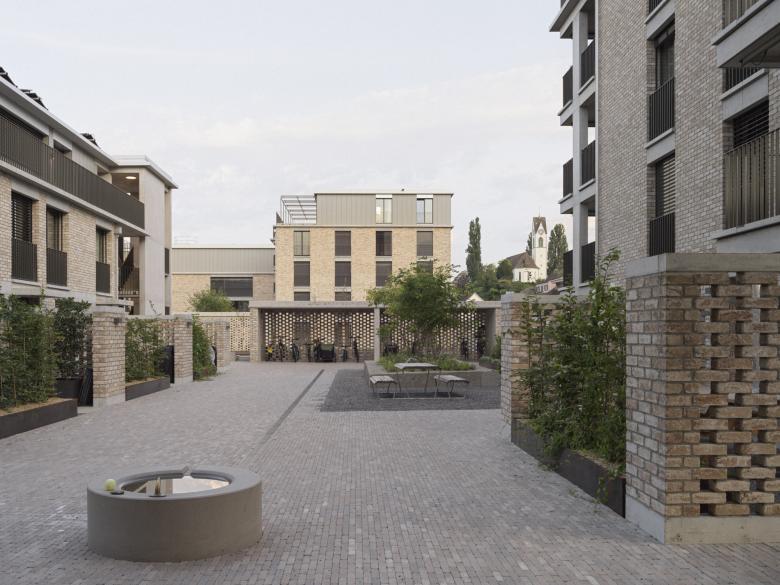 Fünf Höfe, jeweils von drei Wohnbauten mit drei bis fünf Stockwerken umgeben, säumen den Rand der Birchweid und sparen im Zentrum einen grosszügigen, halböffent-lichen Freiraum für Ruhe- und Spielflächen aus. Die Wohnhöfe sind identitätsstiftend und dienen nicht nur der Fussgänger-Erschliessung, sondern laden auch zum Aufenthalt und Verweilen ein. Ein übergeordnetes Grünraum- und Landschaftskonzept sorgt dafür, dass die Aussenräume nicht nur als notwendige Abstands-, sondern als lebendige und sorgfältig gestaltete Freiräume wahrgenommen werden.
