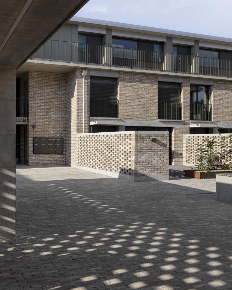 Die Platzierung und Setzung der Gebäudekörper nimmt Rücksicht auf die spezifische Lage und Topgrafie des Areals und nutzt diese optimal für die Anordnung von unterschiedlichsten Geschoss- oder Maisonnette-Wohnungen aus. Bei der Raumbildung und Grundrisskonzeption wurde Wert auf die Entstehung von spannenden Räumen gelegt, auf Licht durchflutete, flexible Innenräume oder grosszügige Aussenräume, sei es als Loggia, Balkon, Dachterrasse oder privat zugänglicher Gartenhof.