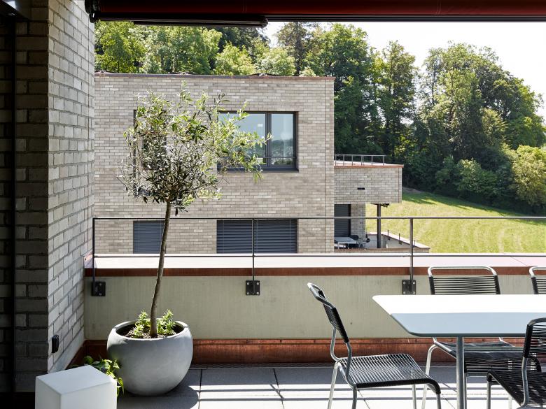 Bewusst wurde eine Gebäudetypologie von Mehrfamilienhäusern entwickelt, die stark mit dem Terrain arbeitet und sich bezüglich Körnung und Massstäblichkeit ortsbaulich ins Wohnquartier einbindet. Insgesamt wurden vier Gebäudetypen entworfen, denen allesamt die gleichen architektonischen und gestalterischen Überlegungen zugrunde liegen. Zwei Gebäudekörper werden sowohl in der Ebene als auch in der Vertikalen versetzt ineinander geschoben. Dadurch entstehen Gebäudestaffelungen, die sich mit dem Gelände nach oben entwickeln und Dachterrassen, welche als fünfte Fassade Gestaltung erfahren.