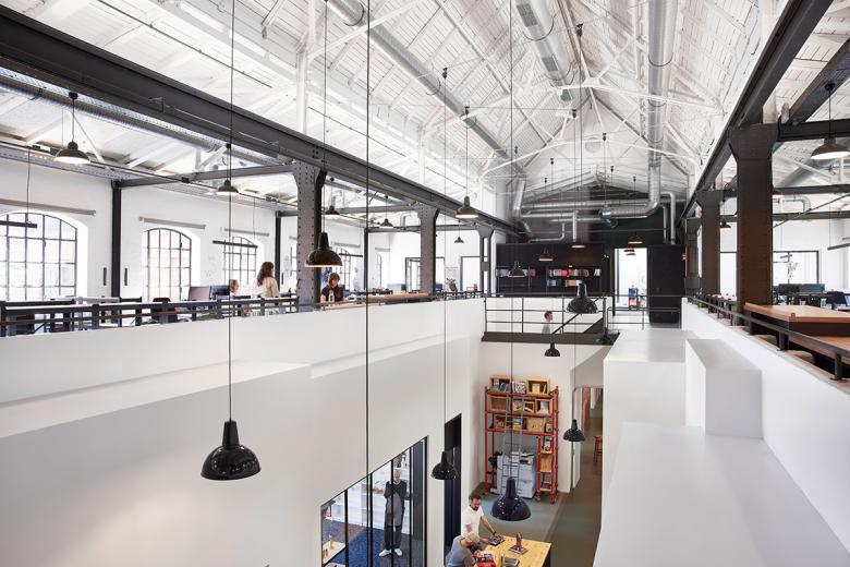 Dort, wo früher der Fokus auf industrielle Fertigung lag, arbeiten nun rund 70 Mitarbeiter des Verlages. Als große Herausforderung bei dem Projekt stellte sich die Umwandlung der heterogenen Hallengebäude in eine effiziente Büroumgebung dar, die den spezifischen Anforderungen des Verlags gerecht wird. Ziel der behutsamen Interventionen war, dass die alte Nutzung der Hallen ablesbar bleibt und gleichzeitig der neuen Nutzung Raum gegeben wird. Mit großer Verantwortung gegenüber dem Bestand wurde so ein neues Regelwerk für die Umwandlung in eine moderne Bürolandschaft erarbeitet.