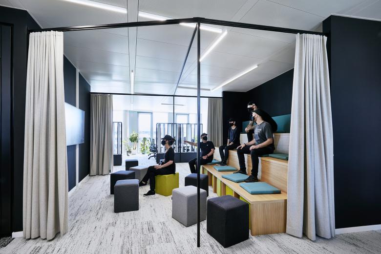 Auf allen Vollgeschossen wurden Team-Labs eingerichtet, die von Teams temporär für die gemeinsame Entwicklung von Projektideen oder die Durchführung von Workshops genutzt werden können.
