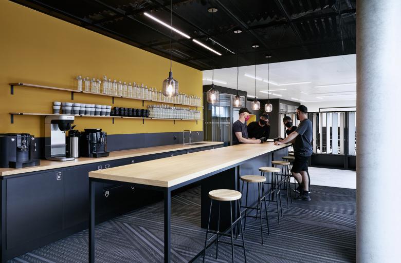Im 1. OG wurde zusätzlich zu den Arbeitsplatzbereichen für das Unternehmen Europace eine 200 m² große All-Hands-Fläche angelegt. Diese als WG-Küche gestaltete Summit Area kann für die interne Kommunikation und ebenso für Co-Working und Workshops mit anderen Unternehmen genutzt werden.