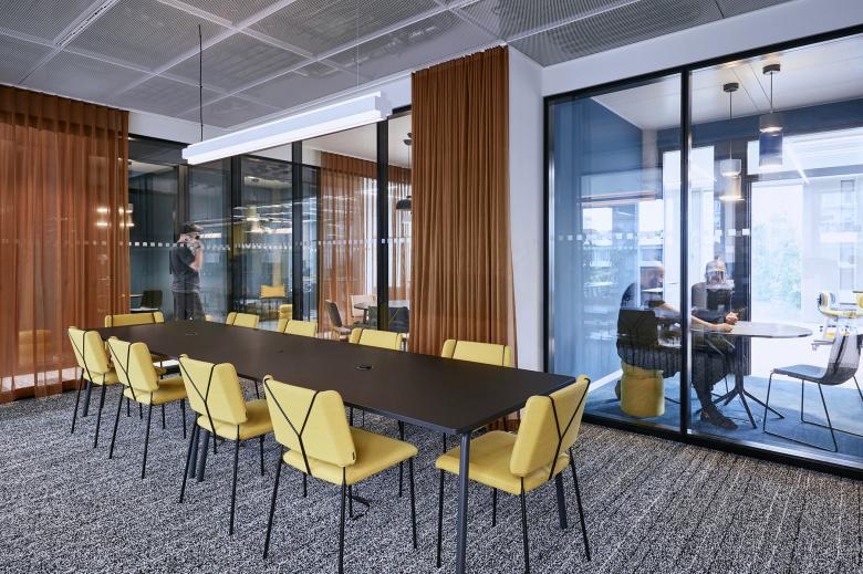 Vereinzelt wird das Raumprogramm ergänzt durch Vierer- und Doppelbüros. Um dem Bedürfnis der Mitarbeiter nach vielfältigen Besprechungsoptionen nachzukommen, wurde eine Vielzahl unterschiedlich großer Meetingräume und informeller Besprechungsinseln und Phone Booths geplant.