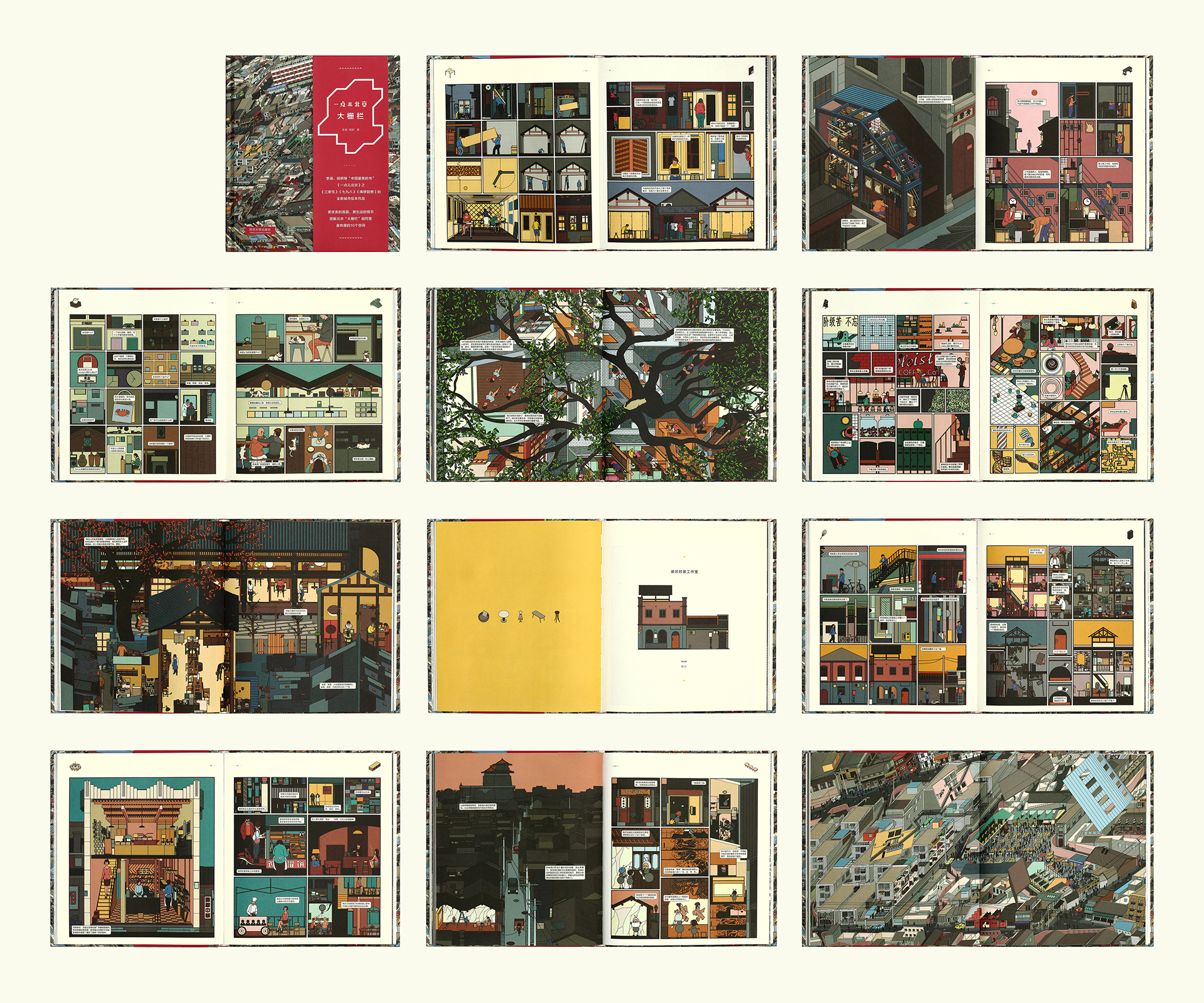 In A Little Bit of Beijing · Dashilar, the authors continued their exploration for the potential of architectural drawings. With precise lines and flat colorings, plans, elevations, sections, and axonometric projections transformed from 3D models are turned into sophisticated drawings with delicate details in a unique mechanical aesthetic feeling. By adding simple words to the drawings, the authors present 10 interviews in the form of graphic novel. Through these stories, the book showcases the relation among people, architecture, and city not only in terms of space and function, but also of time and emotion. Such a fateful subject of architecture is graphically interpreted as an observation with patience, delicateness, and concentration.