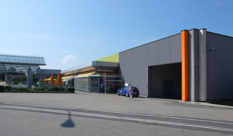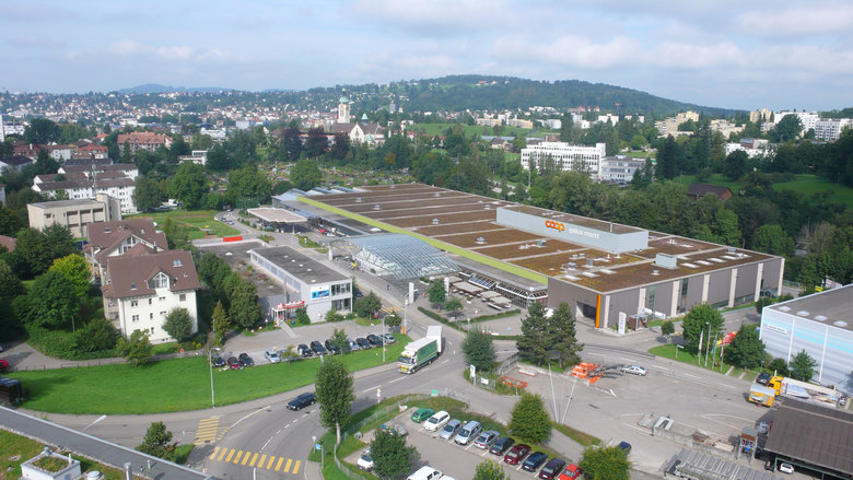 Mit der Umstellung auf das neue Ladenkonzept „Megastore“ wurde neben einem vollständig neuen Layout des Ladenbereiches auch die Aufwertung der Eingangshalle erforderlich. Um sich vom grossen gleichmässig ausgeleuchteten Ladenbereich abzuheben wurde die Mall mit einheitlichen Oberflächenfarben und-materialien stark aufgehellt. Die Ausleuchtung der Decken- und Stützenränder verstärkt den Eindruck von Leichtigkeit und Klarheit. Trotz fliessender Grenzen entsteht eine grosszügige und einladende Ladenstrasse.