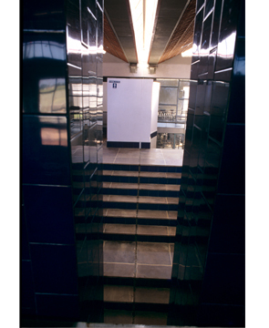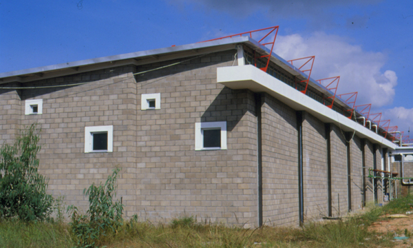 A warm domestic feel is given to the approach route leading to sterile process halls; not only by the change in scale provided by the low undulating roof but also through materials used, echoing the architecture of surrounding villages.