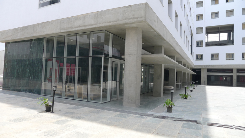 The project is for a large student residence along with supplementary program, adjacent to the main IIIT-B campus. The program is maximized on the new site with a high rise hybrid typology chosen in order to preserve open space in the existing campus.
