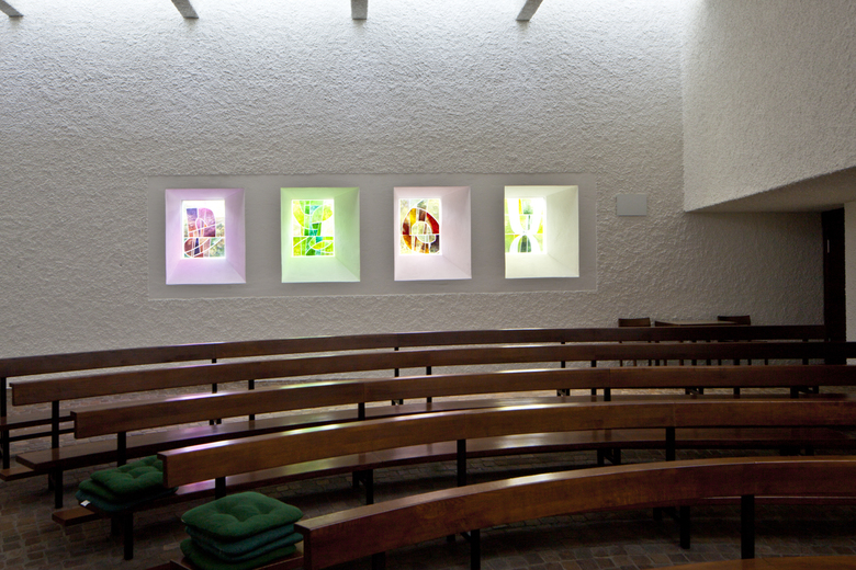 Die katholische Kirche in Murg wurde 1977 feierlich eingeweiht. Die Architekten Bächtold und Baumgartner orientierten sich bei ihrem Entwurf stark an der klassischen Moderne, eine architektonische Strömung dieser Zeit, die geprägt war durch Bauten von Architekten wie z.B. Le Corbusiers.