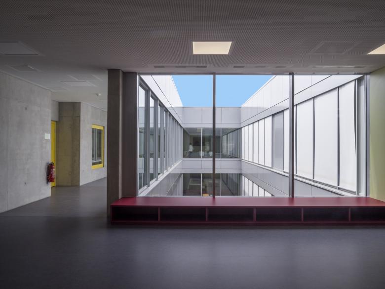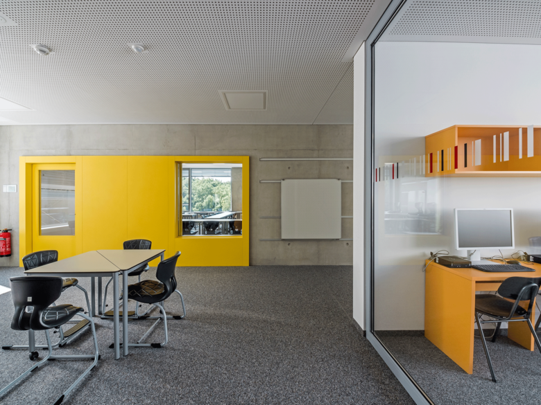 Die Erneuerung des Gymnasium Hilpoltstein fällt in eine Zeit, in der sich auch ein tiefgreifender pädagogischer Wandel vollzieht– weg von geschlossenen, hin zu offenen Raumstrukturen. Das Gebäude trägt diesem Wandel Rechnung: Die Klassenräume sind als Lernhäuser angeordnet. Jedes Lernhaus hat eine innere Gemeinschaftszone mit direktem Bezug ins Freie. Dadurch können nun alle Flächen, auch Verkehrsflächen zur Flexibilisierung und Rhythmisierung des Unterrichtes herangezogen werden. Die gesamte Fläche wird bespielt. Unterricht kann überall stattfinden. Aktuell befindet sich die Schule im Bau.... In Arbeitsgemeinschaft mit Balda Architekten, Fürstenfeldbruck.