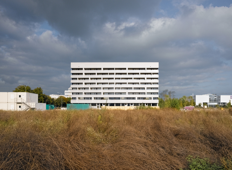 Das Haus A4 auf dem Färbi Areal ist das erste der auf den fünf Baufeldern erstellen Gebäude. Wie die anderen vier nordwestlich angrenzenden Bauten besteht es neben dem Untergeschoss, aus einem dreigeschossigen Sockelbau und einem siebengeschossigen Hochbau, die zusammen im Querschnitt den ortstypischen Winkeltyp bilden. 38 Geschoss-, Maisonette- und Luftraumwohnungen fügen sich in den sieben Obergeschossen individuell ineinander. Manche Wohnungen verfügen über dreiseitige Sichtbezüge über Eck. Der Bau ist durch bloss zwei Treppenhäuser erschlossen. Im Sockelbau befinden sich auf der Südseite im Erdgeschoss, gegen den Park hin Atelierwohnungen mit einer Galerie und strassenseitig Gewerbeflächen. Im 1. Obergeschoss sind Studios und zweigeschossige Wohnungen untergebracht. Der hochgelegte Innenhof den sie umschliessen bildet einen halbprivaten Aussenraum. Die Gebäudehülle aus weissen Eternitplatten und die Balkonbrüstungen aus ornamental perforierten Aluminiumblechen unterscheiden die äussere Gestalt von den fünf Nachbarbauten.