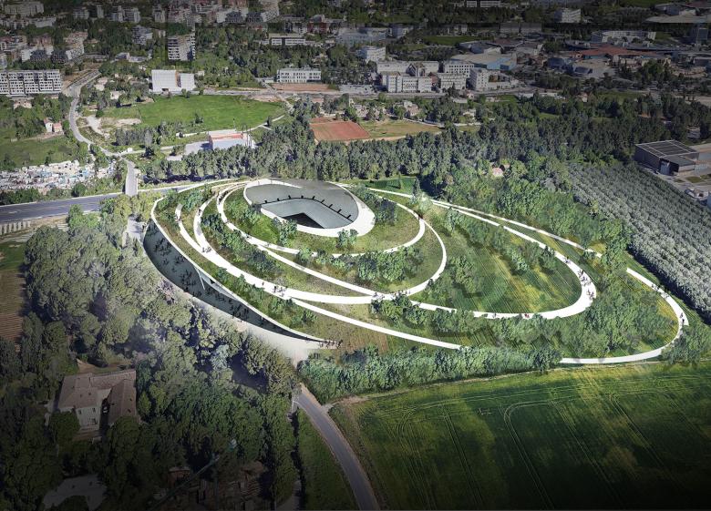 Uno stadio/parco che si trasforma in una verde collina sempre fruibile dalla comunità.
