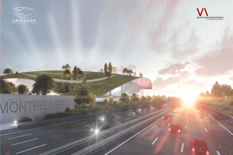 "Craterre" è all'interno di un filamento verde che collega la città di Montpellier (a nord) con l'aeroporto e il mare (a sud).