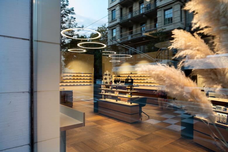 Die komplette Neugestaltung der bestehenden Räumlichkeiten zeigt einen durchgehenden, grosszügigen Verkaufsraum, der ohne schnell vergängliche, modische Accessoires oder «Trends» eine unverwechselbare Identität schafft. Dadurch werden Werte wie Präzision und Qualität vermittelt. In enger Zusammenarbeit mit den Auftraggebern wurde das Raumgefüge bis ins Detail organisatorisch aktualisiert. Die konsequente Formensprache, eine subtil-elegante Materialisierung und die spezifisch kreierte Möblierung stellen die Produkte in den Fokus. Die Präsentationsbereiche sind blendfrei beleuchtet und können flexibel gestaltet werden. Die ideale Anordnung der einzelnen Verkaufs- und Beratungszonen ermöglichen optimale Abläufe und direkte Interaktion mit den Kunden. Neue Materialien — Eiche als Holz für die Kundenzone und weißer Werkstoff für die Brillenpräsentation — dienen der «visuellen Erfrischung». Zusammen mit der gezielt eingesetzten Beleuchtung entsteht eine angenehme Atmosphäre für Kunden und Optiker. Die zurückhaltende Erscheinung des Verkaufsraumes, die eleganten und natürlichen Materialien, sowie die optimale Beleuchtung garantieren dem Optikgeschäft den zeitgemässen visuelle Auftritt, der die höchste Qualität der Optikerleistung widerspiegelt.