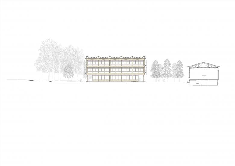 Das neue Schulhaus Allmend fasst die zusätzlich benötigten Unterrichtsräume für die Primarstufe Horw in einem kompakten dreigeschossigen wandelbaren Schultrakt in Holzbauweise zusammen. Die architektonische Gestalt des Schulbaus ist nebst den pädagogischen Anforderungen geprägt von den aktuellen Herausforderungen des Klimawandels & der Nachhaltigkeit. Das Ziel des ressourcenschonenden Bauens formt die architektonische Erscheinung massgebend mit und führt zu einer spezifischen architektonischen Gebäudefassung, welche für die Schülerinnen und Schüler ein charaktervoller Erfahrungsraum, bereichert um das Thema der Nachhaltigkeit, darstellt.