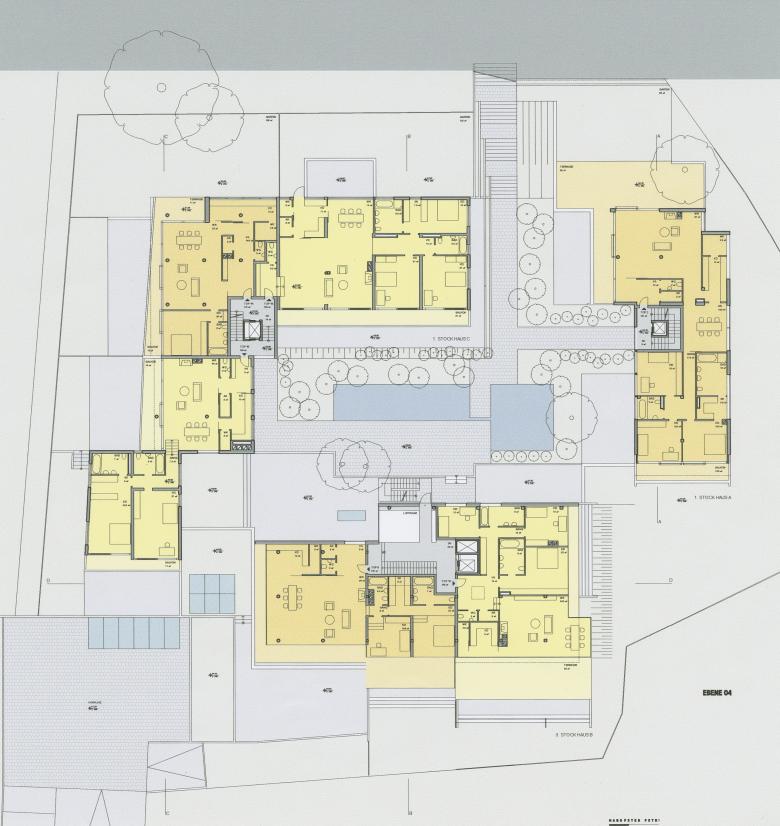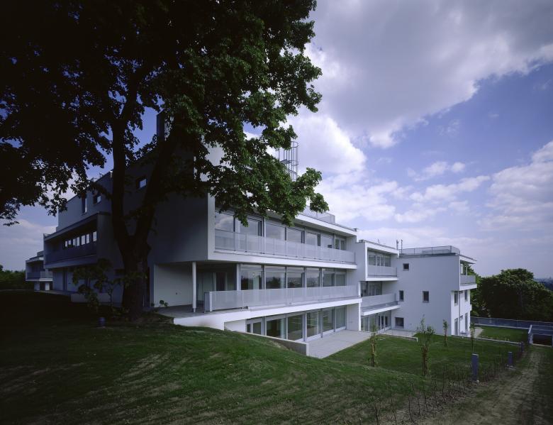 Die Aufgabe war schwierig, immerhin galt es mit begrenztem Aufwand 22 getrennt vermiet- und verwaltbare Luxuswohnungen zwischen 150 und 250 m² in und um einen Bestandskern zu planen, ohne dessen Umrisse wesentlich zu verändern. So konnte man nur in der Höhenentwicklung ansetzen und mit der Aufstockung den geforderten Raum gewinnen - Petri deklariert das aber klar mittels Gesimskanten im Außenputz, welche die alte Trauflinie markieren. Die abwechslungsreich und jeweils unverwechselbar geschnittenen Wohnungen wurden als Maisonetten, in einer Ebene und als Split Level Typen angelegt. Dominierendes Prinzip war dabei eine Art Loftcharakter, der nicht nur dem originalen Baugedanken, sondern auch der aktuellen Vorstellung von fließenden Räumen entspricht. Halboffene ``Raum in Raum`` - Einheiten, offene Kamine, großzügige Verglasungen und Öffnungen auf Terrassen oder private Gärtenflächen sind die Merkmale dieses entspannten Wohnens auf hohem Niveau.