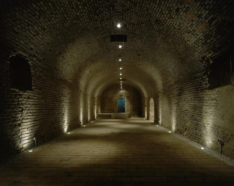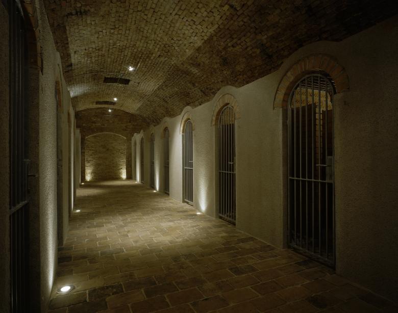 Im Untergeschoß bietet sich im renovierten Hallenbad samt Saunabad ein markantes Erlebnis unbekümmerter 1960er Ästhetik. Bunte Fliesen in ondulierend –floralem Dekor treffen damals wie heute den Zeitgeist perfekt – sie mussten nur eine wenig renoviert und mit Installationen in heutige Hygienestandards ergänzt werden. Tief unten gibt es – für diverse Eventnutzungen – auch noch alte Bierkeller von einer ehemals ansässigen Brauerei. Ein eigener Weinkeller für jede Wohnung und ein Freibad unter alten Linden im rückseitigen Hangbereich der Anlage komplettieren die Ausstattung.